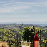 Die 1-Zimmer- Schilcherlandleben - Weingartenhaus verfügt über eine Terrasse mit Blick auf die Berge und ist 21 Autominuten vom Flughafen Graz entfernt gelegen.